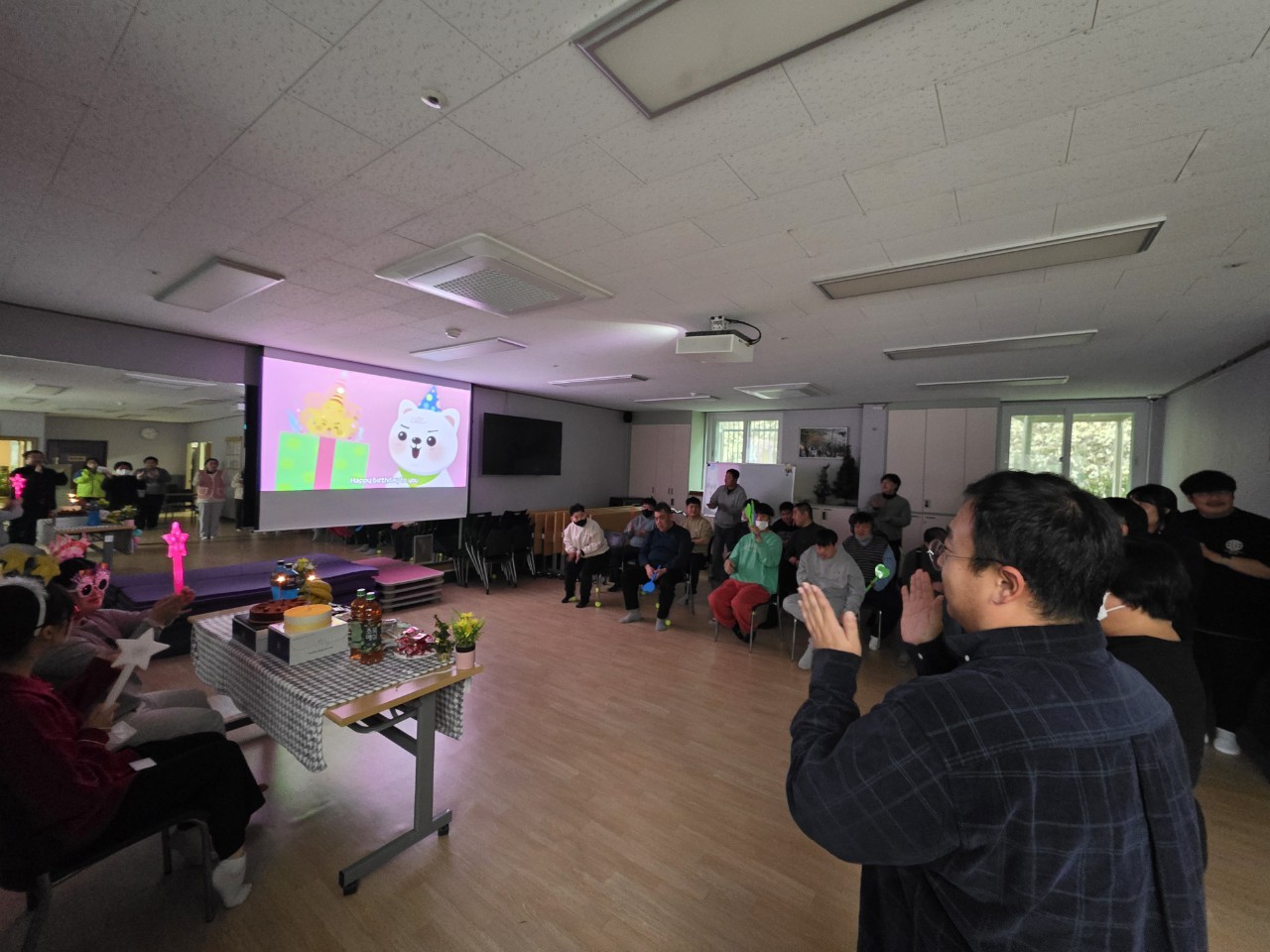 ❤ 내 용 : 도래샘주간보호소에서는 12월 생일을 맞으신 "이은서, 박지수" 이용자를 위해 생일 축하 노래 합창 및 생일 선물 증정식을 진행하였습니다. 파티가 끝난 후에는 다 같이 케이크&다과를 먹으며 오순도순 행복한 시간을 보냈습니다.