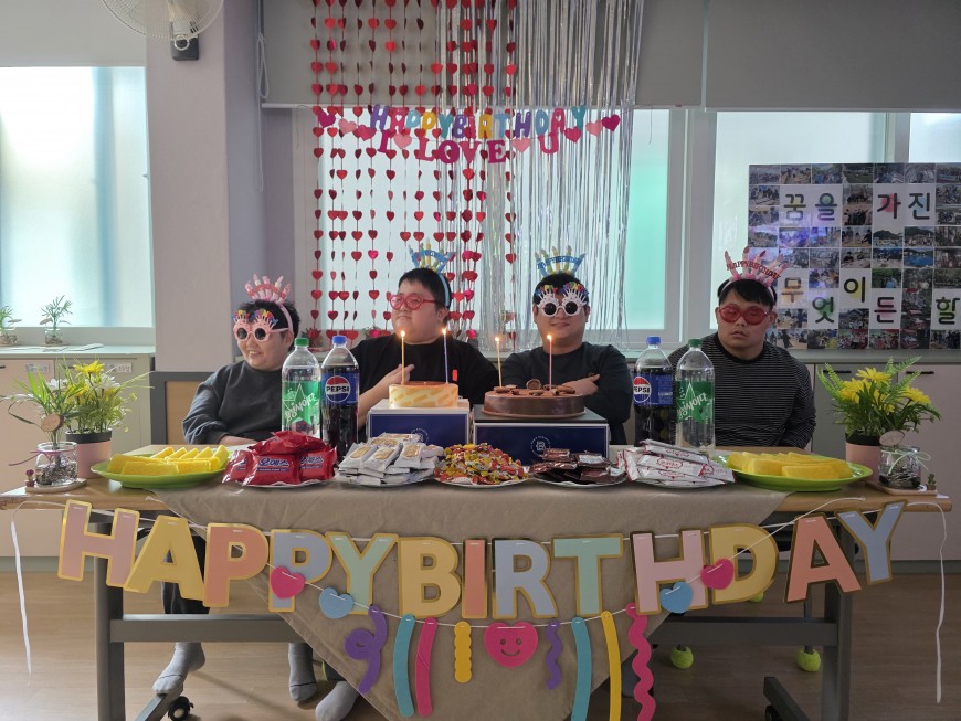 : 도래샘주간보호소에서는 10월 생일을 맞으신 "최누리, 홍석준, 강세혁, 조성율이용자를 위해 생일 축하 노래 합창 및 생일 선물 증정식을 진행하였습니다파티가 끝난 후에는 다 같이 케이크&다과를 먹으며 오순도순 행복한 시간을 보냈습니다.