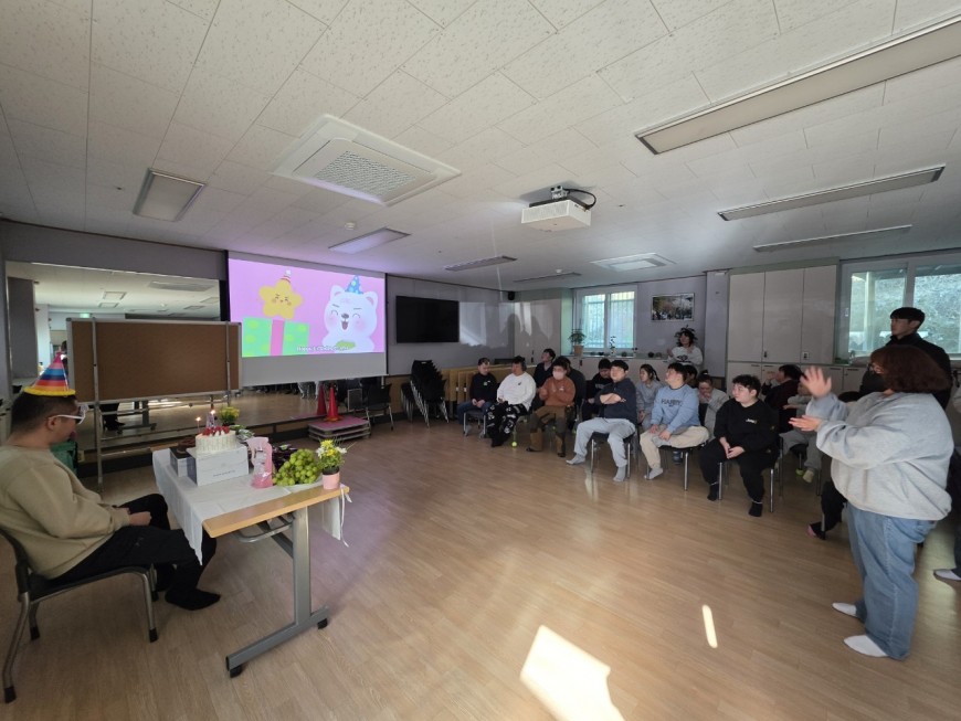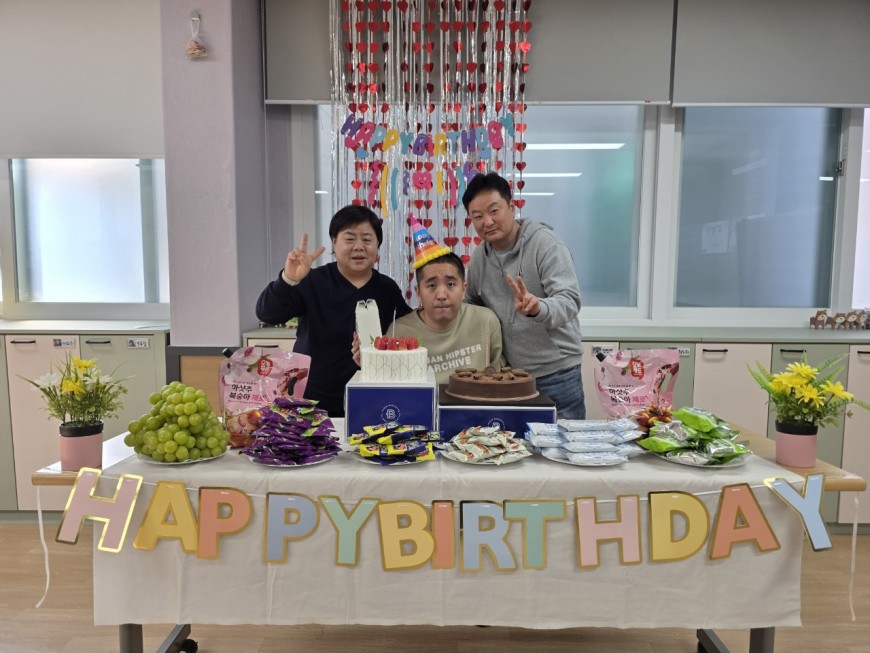 ❤ 내 용 : 도래샘주간보호소에서는 2월 생일을 맞으신 "김동형" 이용자를 위해 생일파티 및 선물 증정식을 진행함으로 1년에 하루뿐인 특별한 날을 제공했습니다. 파티가 끝난 후에는 함께 케이크 및 다과를 먹으며 오순도순 행복한 시간을 보냈습니다.