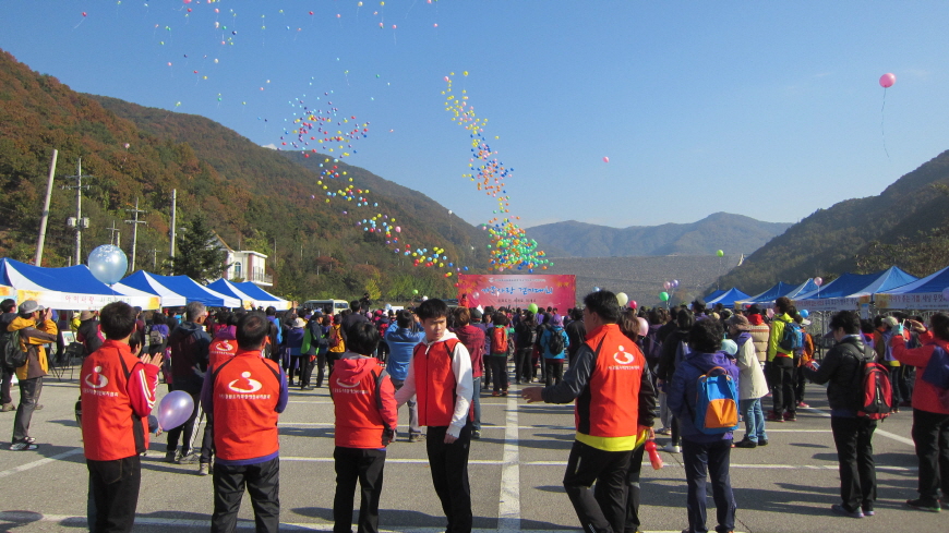 파란 가을하늘 아래 춘천시지부 도래샘 주단기보호소 가족과 함께 걷기대회에 다녀왔습니다
