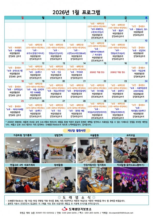 2026년 새해에는 새롭게 선보일 뷰티 프로그램과 바리스타 체험을 통해 이용인 분들의 잠재된 매력을 발견하고 사회성을 키울 수 있는 다채로운 경험을 선사할 예정입니다.