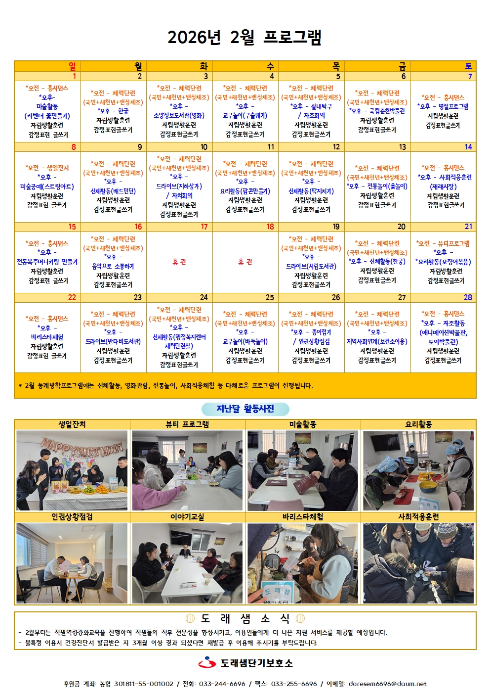 2026년 2월 활동프로그램 안내